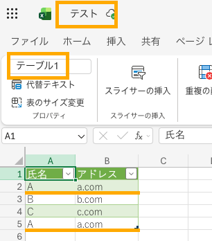 Excelテーブルから取得したメールアドレスの重複削除の方法