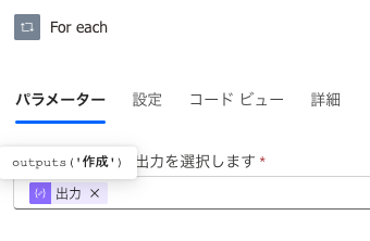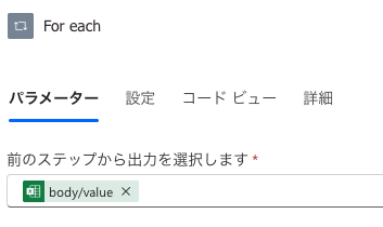 - 取り込んだ情報を「For each」で繰り返す。